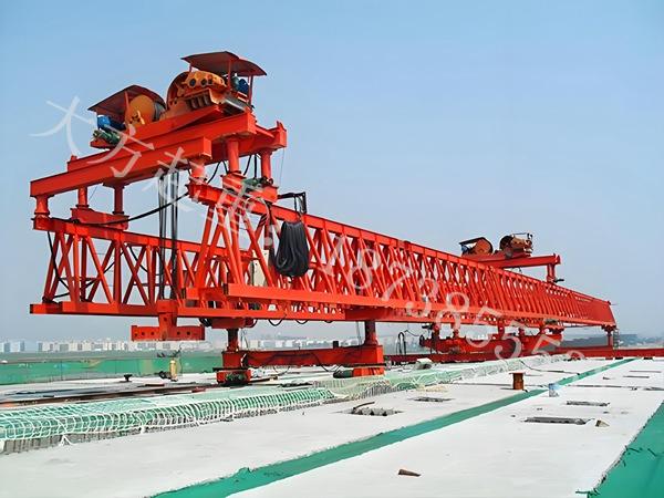 受力均衡化:采用 “主梁分段受力 + 多点支撑” 设计,避免单跨受力集中。例如在跨径 100 米以上机型中,会增设临时支腿或鼻梁辅助承重,将载荷分散到多个桥墩,解决大跨度下主梁挠度超标的问题。结构轻量化:在保证强度的前提下,通过 “箱型主梁 + 桁架式副梁” 组合,减少自身重量。比如使用 Q690 高强度钢替代传统 Q355 钢,同等跨度下主梁重量可降低 20%-30%,降低对桥墩承载的压力。刚度精准化:严格控制主梁在额定载荷下的挠度(通常要求≤跨度的 1/1000),通过有限元分析优化主梁截面尺寸,确保架设时梁体平稳,避免因结构变形导致梁片对位偏差。二、关键技术配置(以 100 米跨径架桥机为例)