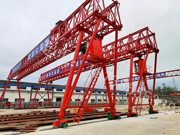 额定起重量:指龙门吊允许吊起的最大荷载,包含吊具自身重量。选型时需以单节段梁的最大重量加上吊具或吊梁扁担的重量为基础,同时预留 10% 到 20% 的余量,避免荷载过载。节段梁场专用龙门吊的额定起重量范围多在 50 吨到 500 吨之间,大跨度桥梁节段梁施工常用 100 吨到 300 吨的规格。跨度:即龙门吊两侧支腿轨道中心线之间的水平距离。确定该参数需结合梁场预制台座和存梁台座的布置宽度,既要满足节段梁水平移位时的净空需求,又要兼顾梁场土地利用率。常规节段梁场龙门吊跨度多在 18 米到 40 米,其中 20 米到 30 米是主流配置。起升高度:是吊钩从最低位置到最高位置的垂直移动距离。其数值需覆盖节段梁自身高度、梁体脱模所需的空间,若采用叠层存梁工艺,还要叠加每层梁高与垫块高度的总和。一般起升高度在 10 米到 25 米,当叠层存梁层数不少于 2 层时,起升高度需不低于 15 米。起升速度:指吊钩升降的速度,需兼顾施工效率与吊装平稳性。空载状态下起升速度可相对较快,满载吊装节段梁时则需低速运行,保证精准对位。通常满载起升速度在 0.5 米每分钟到 2 米每分钟,空载起升速度在 2 米每分钟到 6 米每分钟。大车运行速度:即龙门吊整机沿轨道纵向移动的速度,需根据梁场长度和台座间距调整。长距离移位时可提高速度,临近目标台座时需切换低速。该速度范围在 5 米每分钟到 30 米每分钟,多采用变频调速技术,支持无级变速。小车运行速度:是起重小车沿主梁横向移动的速度,与龙门吊跨度相关,核心是满足节段梁在台座间的精准对位需求。速度范围通常在 3 米每分钟到 20 米每分钟,同样支持低速微调操作。二、 结构设计参数这类参数决定龙门吊的结构强度、稳定性和工况适配能力。主梁结构形式:节段梁场常用双主梁箱型结构,这种结构刚度大、抗扭性能强,适合大吨位、高精度的节段梁吊装作业;对于轻量化需求较高的小型梁场,可选用桁架式主梁,其自重轻、风阻小,但抗扭性能弱于箱型结构。支腿形式:主流有两种,一是 A 型支腿,结构稳定且占地面积小,适配 25 米以下的中小跨度龙门吊,是节段梁场的常用配置;二是 U 型支腿,净空高度更大,适合吊装超高节段梁或需要跨越存梁台座的工况,多用于 25 米以上的大跨度龙门吊。轨距与轮压:轨距是单支腿下两侧轨道的间距,需与支腿宽度匹配,保障整机运行平稳;轮压是车轮对轨道的最大压力,选型时必须核算梁场轨道基础的承载力,避免基础沉降,常规轮压控制在 150 千牛到 500 千牛之间。抗倾覆稳定性系数:这是行业强制要求的安全参数,龙门吊在空载、满载、暴风等所有工况下,抗倾覆系数必须不低于 1.5,防止吊装或停机过程中发生倾覆事故。三、 电气与控制系统参数